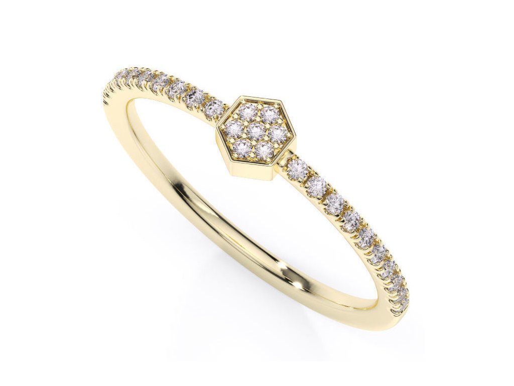 Prsteň je vyrobený zo 14 karátového žltého, červeného alebo bieleho zlata. Všetky kúsky z bieleho zlata sú rhodiované.