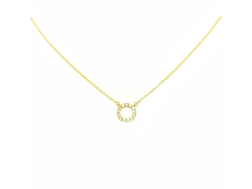 Náhrdelník Nanima vyzdobený jemnými zirkónmi v kruhu s vonkajším obvodom 10mm pre dni, keď potrebujete viac svetla. Retiazku s dĺžkou 45 cm je možné vďaka krúžku naviac upnúť aj v dĺžke 42 cm.
