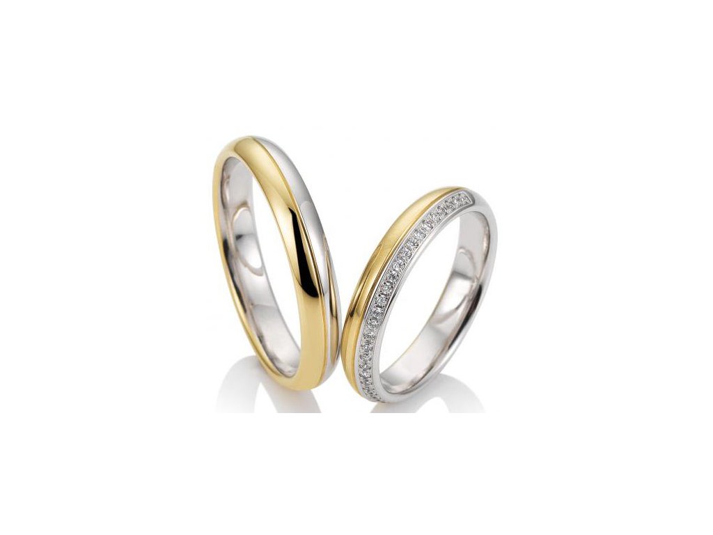 Ručne vyrobené zo 14 karátového žltého a bieleho zlata, časť obrúčky z bieleho zlata je povrchovo upravená rhódiom.