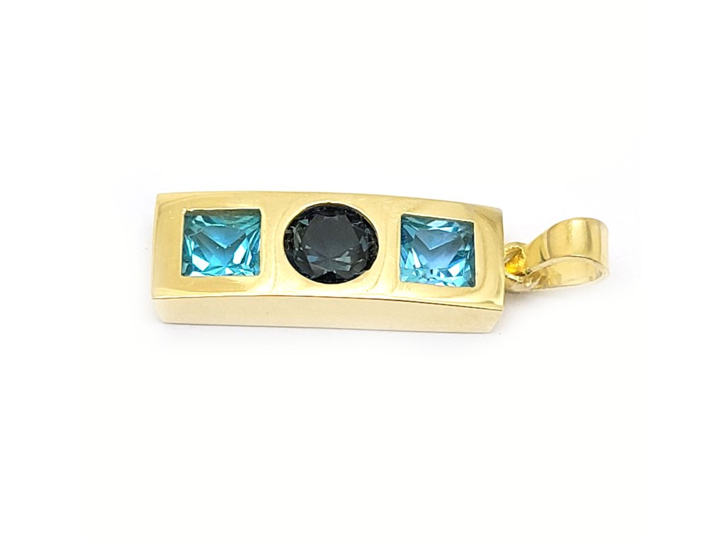 Tri prírodné zafíry zdobia prívesok Albert vyrobený podľa zadania klienta. Spôsob osadenia kameňov ich chráni pred náhodným odrením či vypadnutím. Elegantný a nadčasový kúsok.