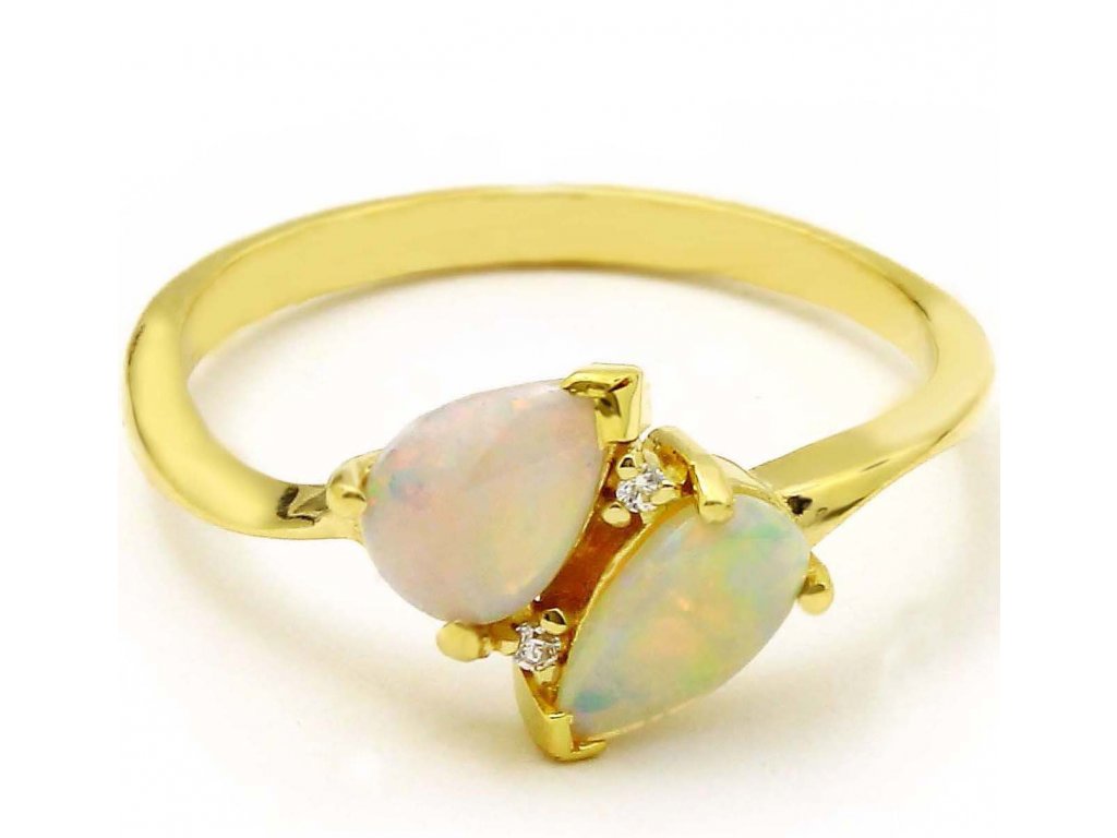 Kamene: 2 prírodné biele opály, 2 zirkóny s briliantovým brúsom.