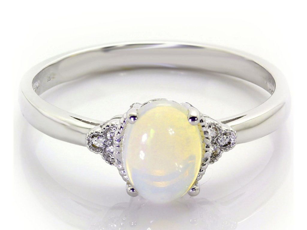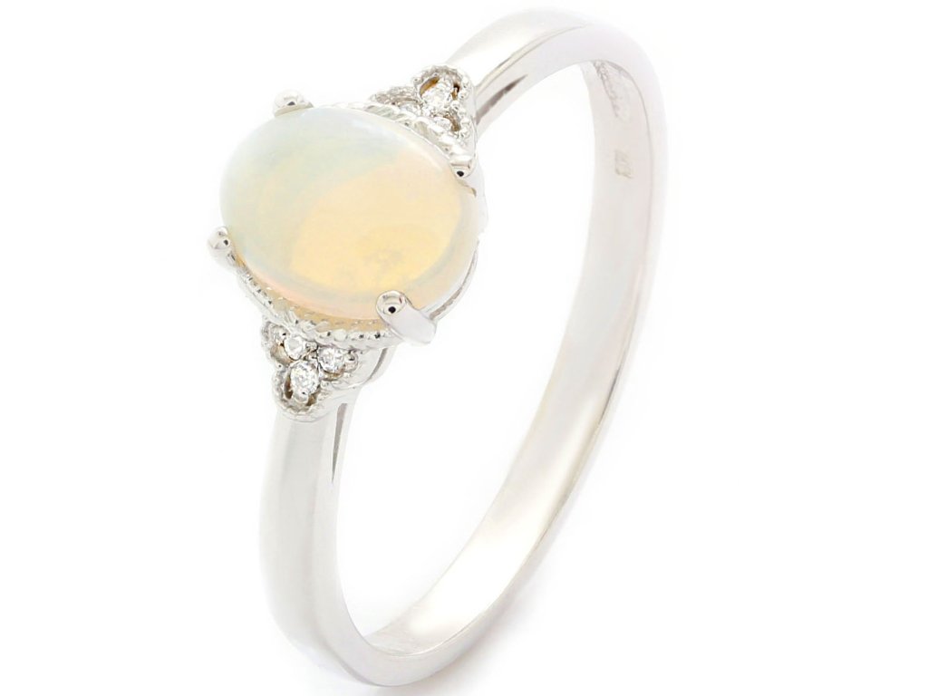 Kamene: 1 prírodný africký welo opál, 6 zirkónov s briliantovým brúsom.