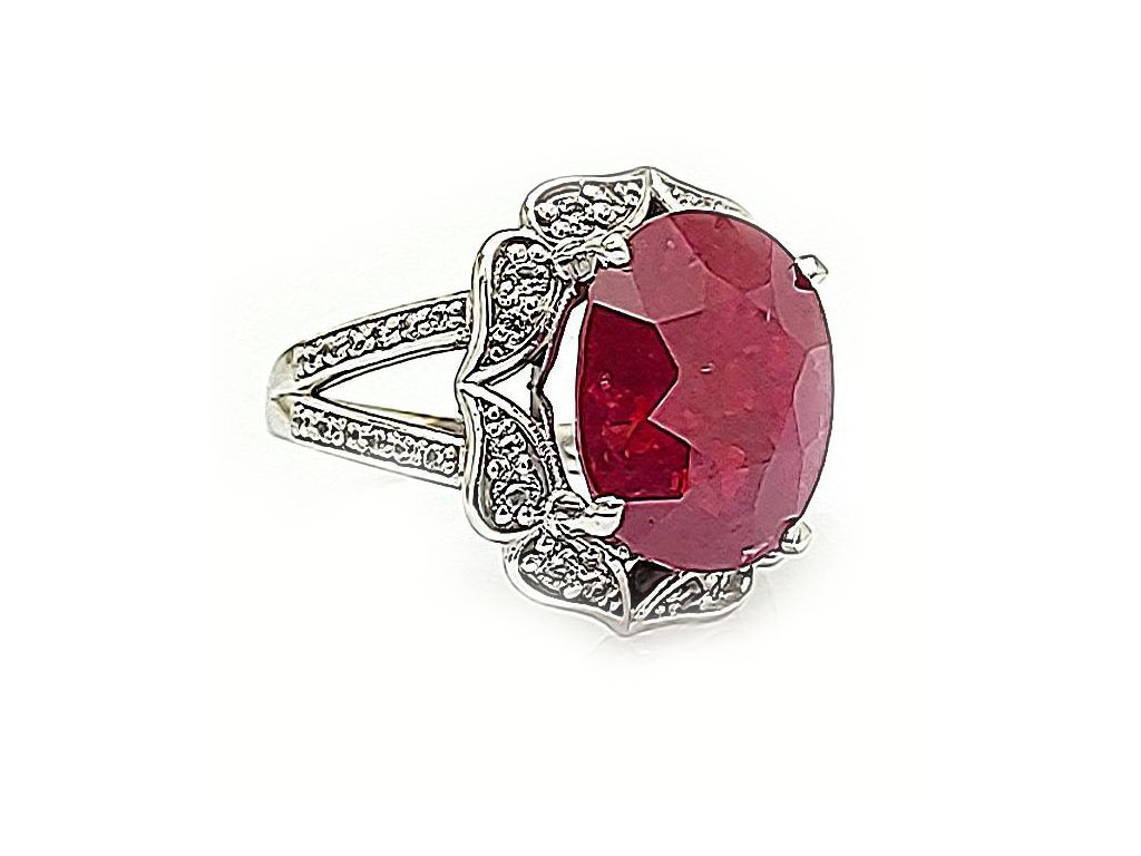 Kamene: prírodný rubín 15x12 mm, 8 briliantov 2mm, 8 briliantov 1,5mm, 24 briliantov 1,3mm