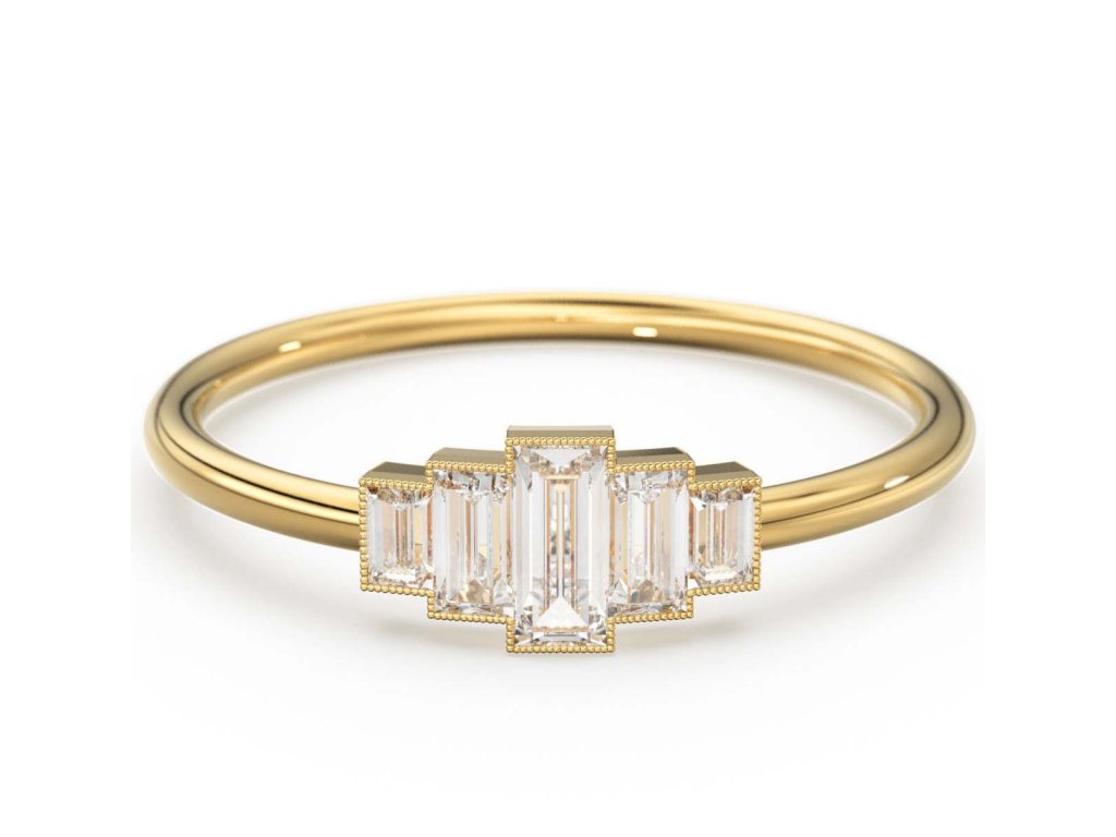 Prsteň je vyrobený zo 14 karátového žltého, červeného alebo bieleho zlata. Všetky kúsky z bieleho zlata sú rhodiované.